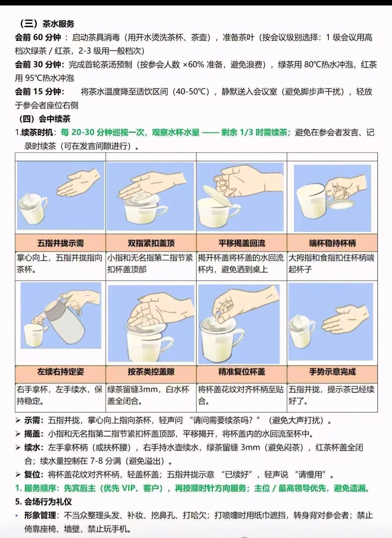 华为会议接待商务礼仪标准作业指导书,一共7页,直接打印即可,内容包含会前准备细则、接待引领规范、茶..