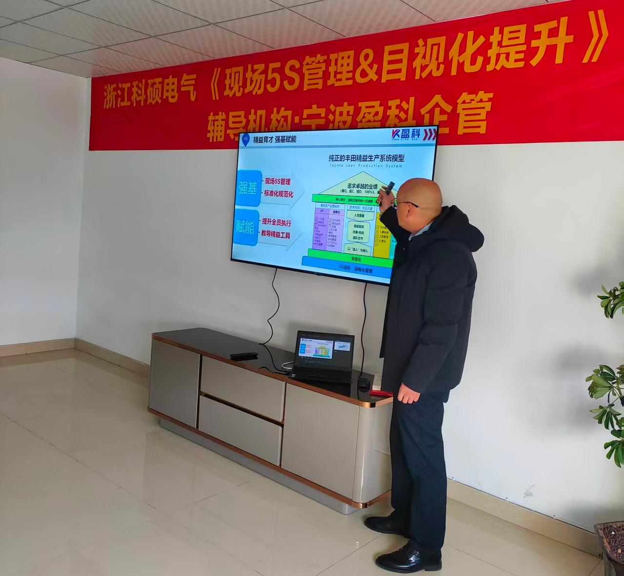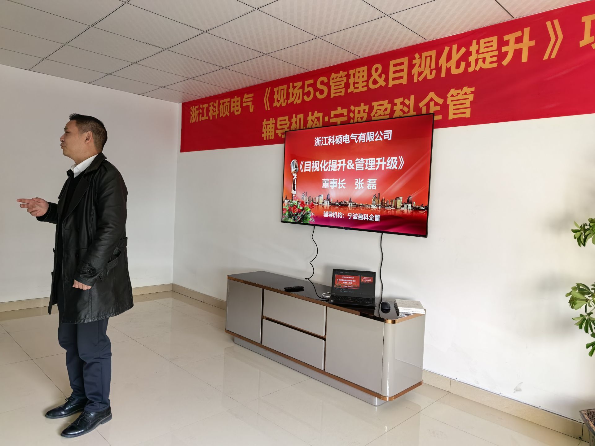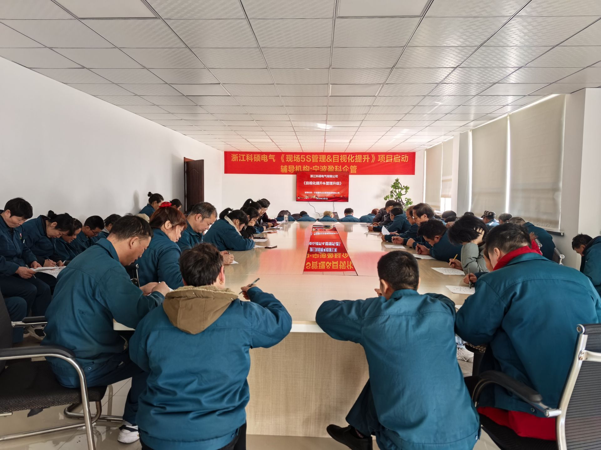 2026年2月2日,浙江科硕电气有限公司办公楼会议室内暖意融融、氛围庄重,精益项目小组成员齐聚一堂,共同见证《现场规划及目视化提升》精益项目正式启动,拉开了科硕电气现场管理升级、精益转型的序幕。